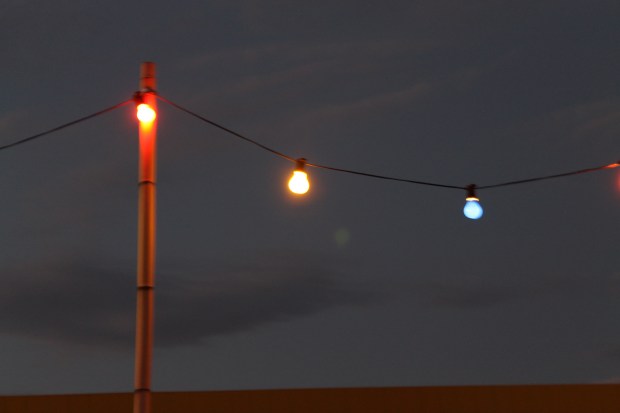 After the sun set the sky went a lovely midnight blue colour making the light bulbs stand out more.