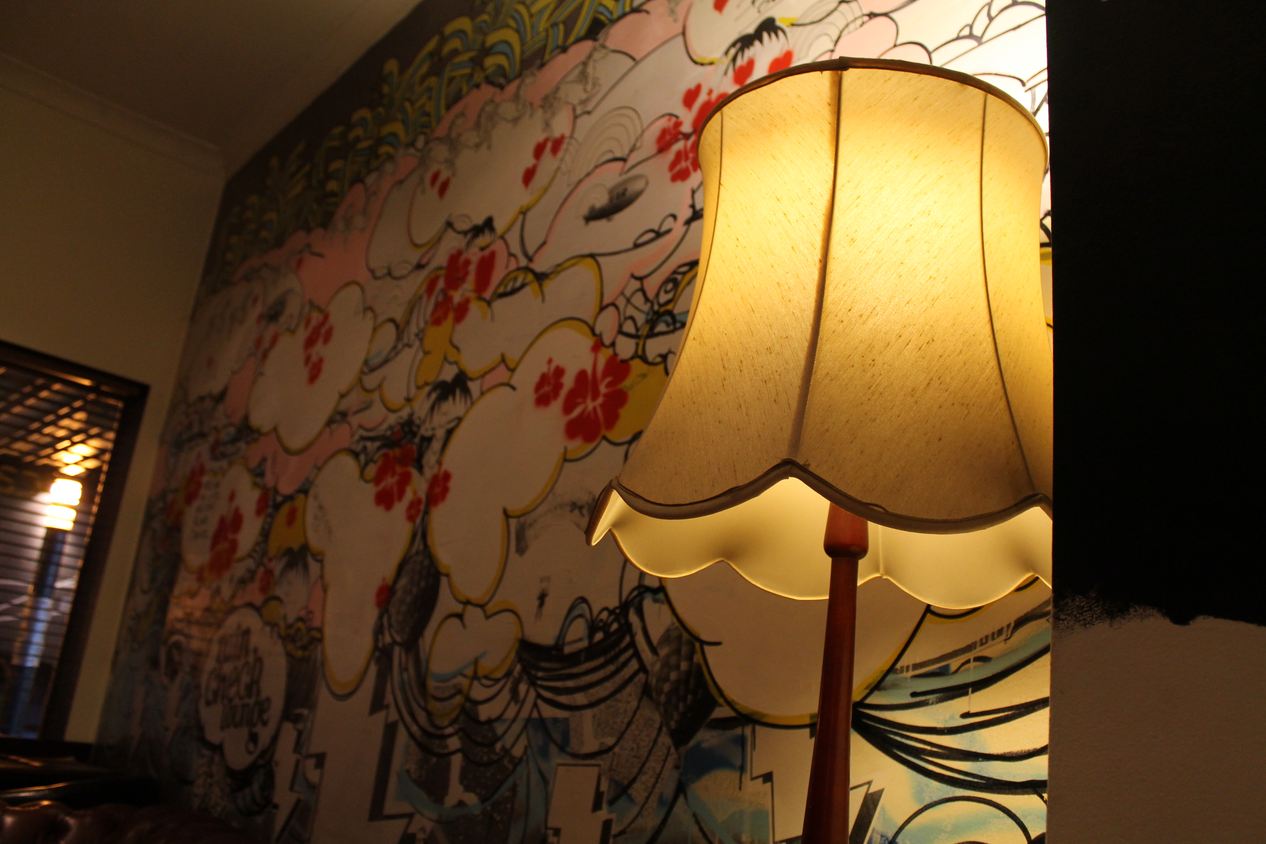 The interior mural wall of the Rain Check Lounge in North Hobart.