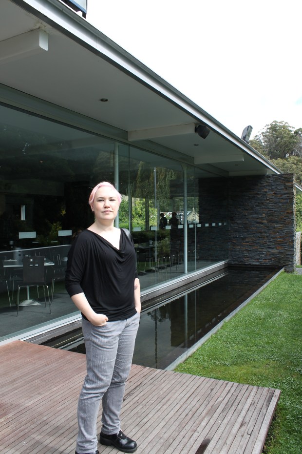 Cascade has a lovely restaurant that can double as a function centre, it would be lovely for a wedding as the gardens are gorgeous. Here we see Louise looking pensively back towards Hobart.
