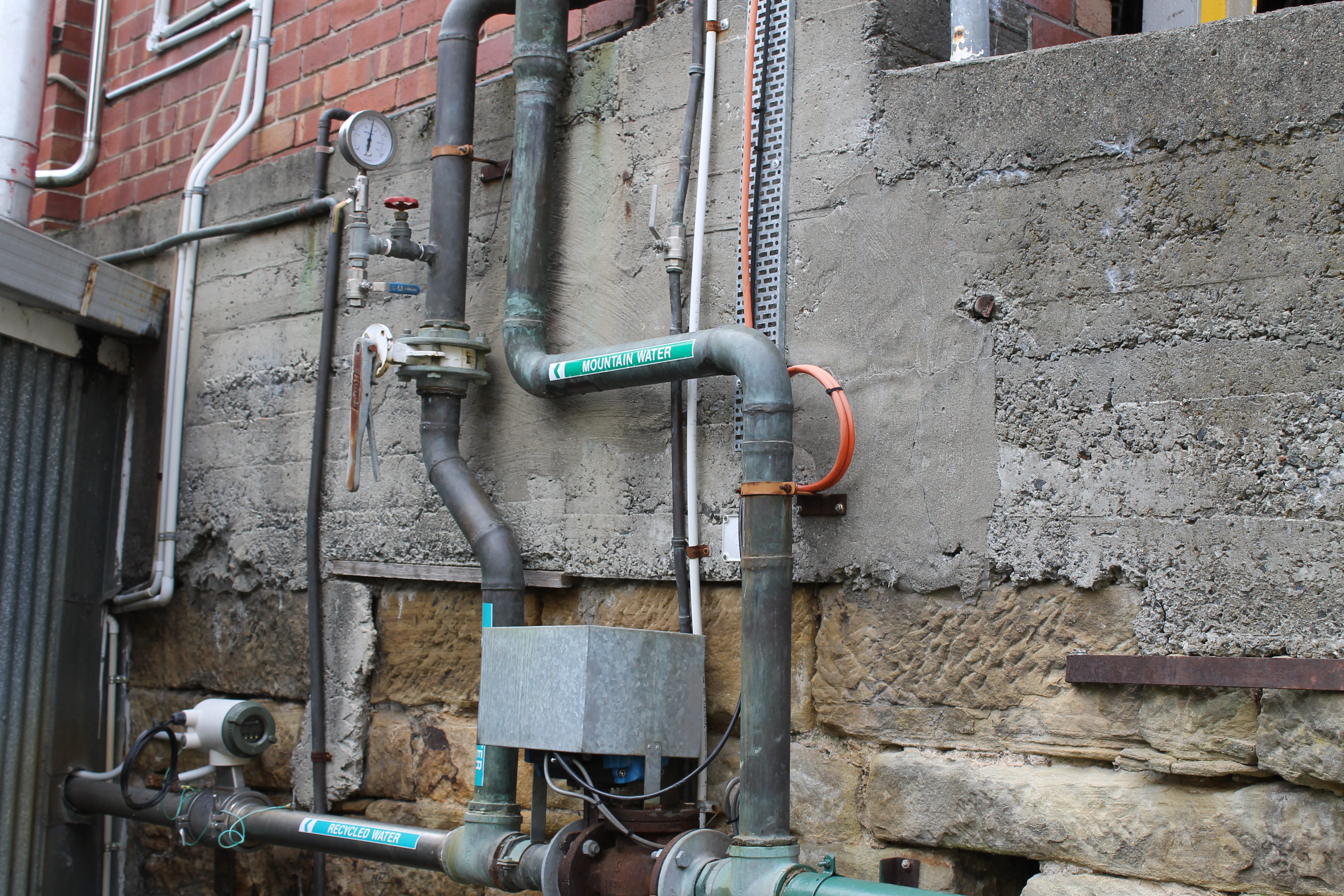 The brewery was set up at the base of Mt Wellington so that the brewers would have access to the cleanest water. I was particularly amused by the pipes in this photo: mountain water pumped directly into the brew house.