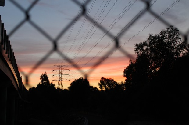 Slightly further down the hill there is a freeway (to the left of the shot) that runs over parklands (in which the big electricity towers are shown). I liked the juxtaposition of this shot – the wire fencing, the freeway overpass, the electrical towers and the trees.