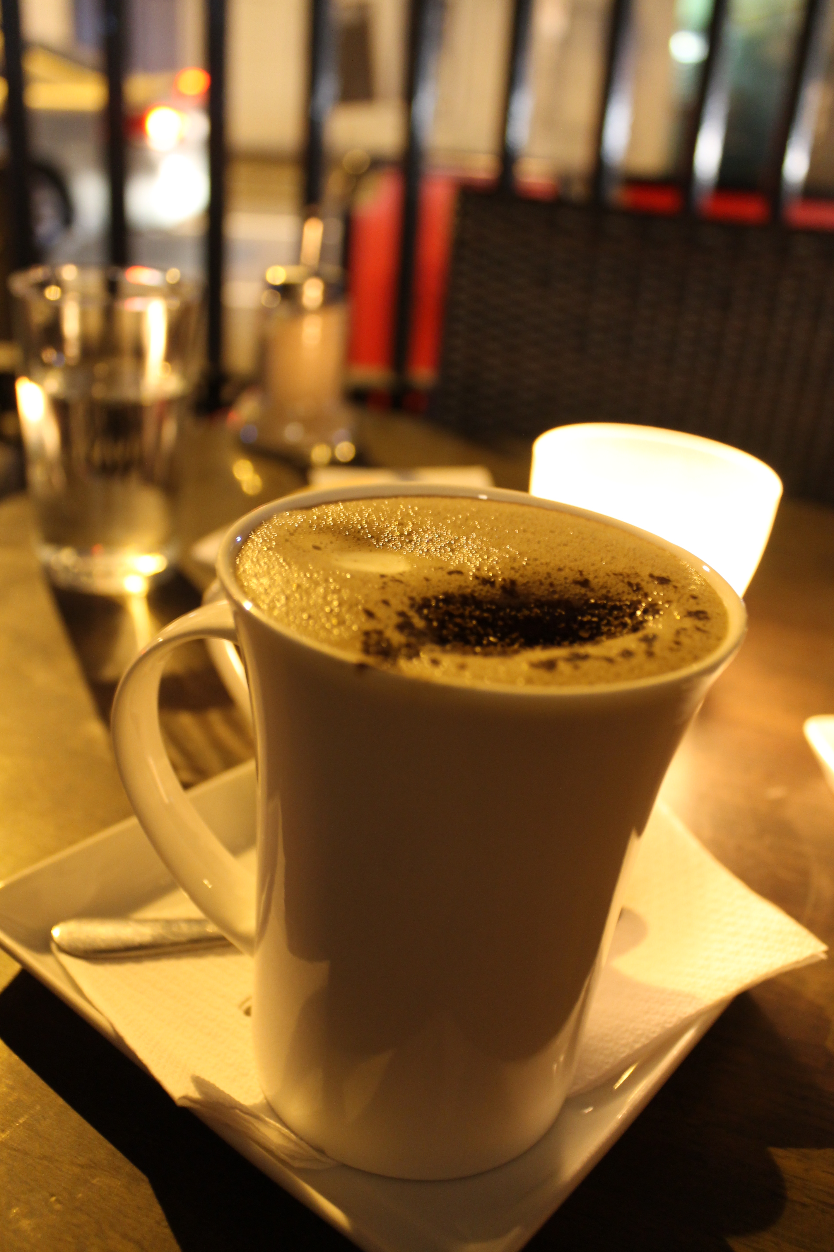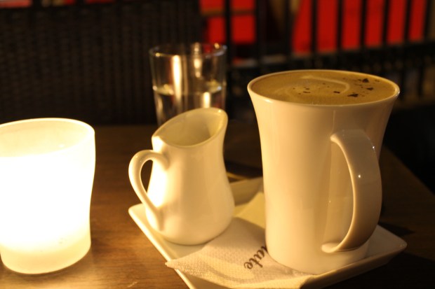 This is the chilli hot chocolate that I had; I quite like the sort of washed out yellow quality of the photo coming from the lamplight.