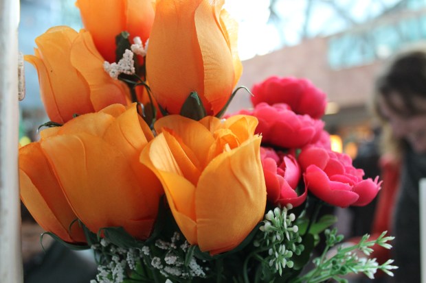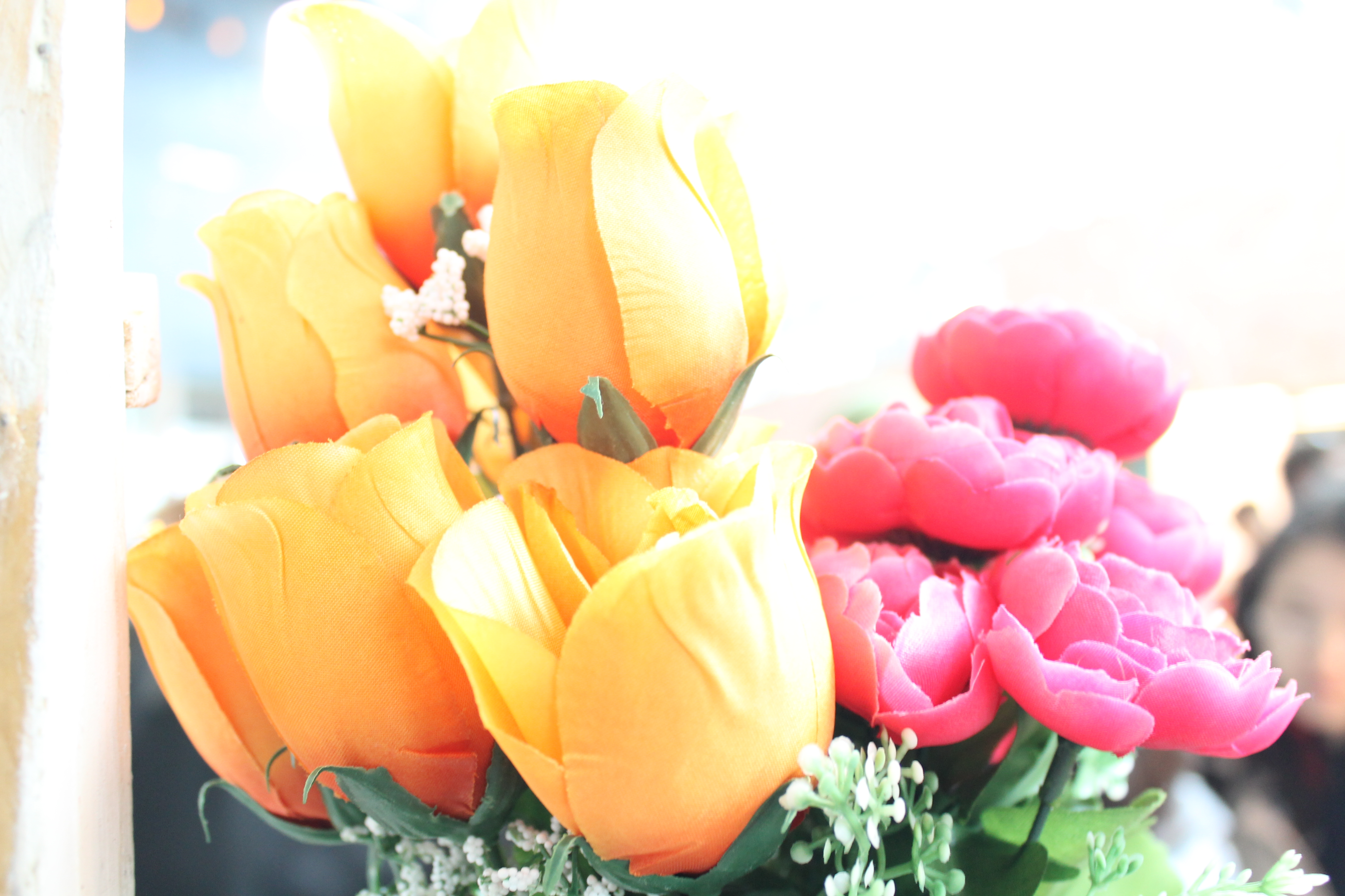At some point while I was chatting with them, I suggested that I get some shots of them working the stall, seeing as it’s usually one of them who has to take the photos and there are not many photos of the two of them. I got some lovely photos of their stall, I did some experiments with long exposures to get a sense of the people scurrying about but they turned out too blurry (I didn’t have the tripod with me) and I took a series of photos of a bunch of fake flowers in their stall that I kind of love.