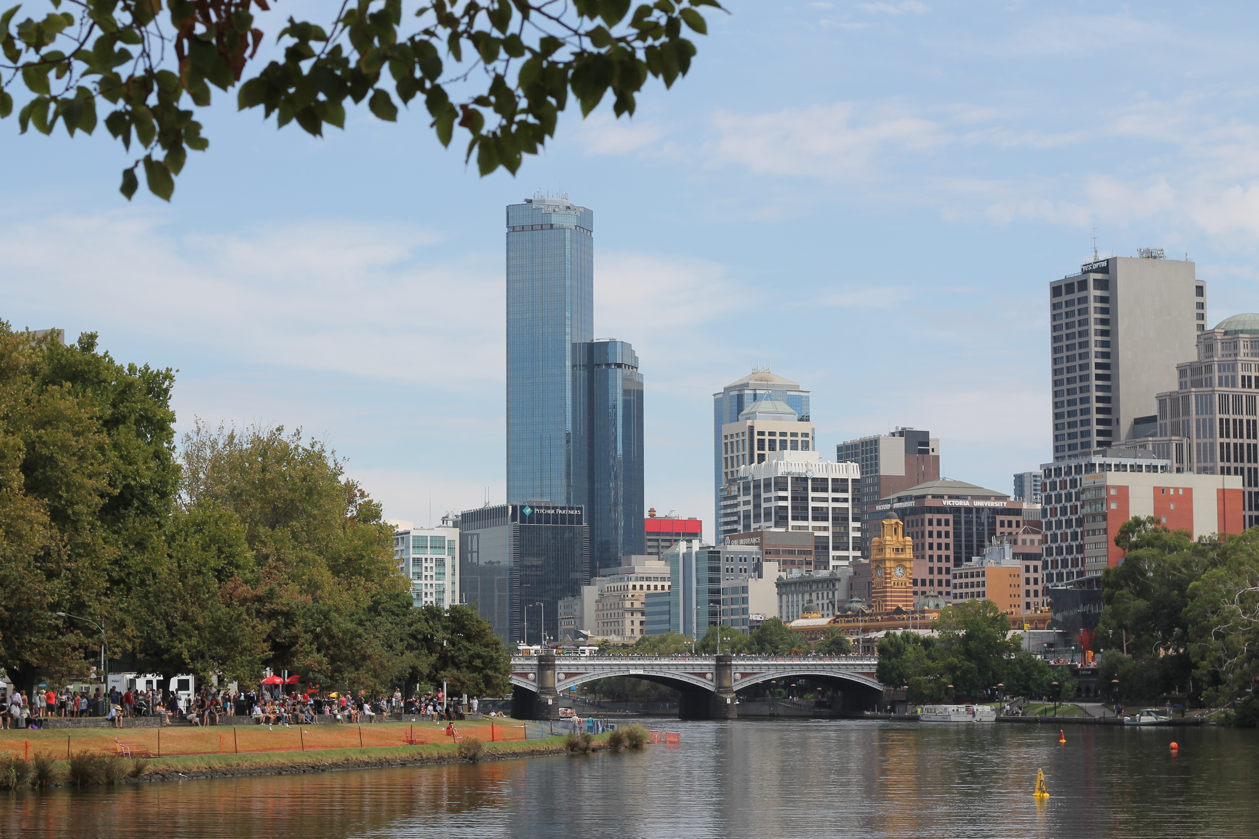 This is the view of some of the Melbourne CBD, with Flinders’ St train station, Princes Bridge and the Yarra. Fed Square, for reference, is to the right of this shot behind those trees.