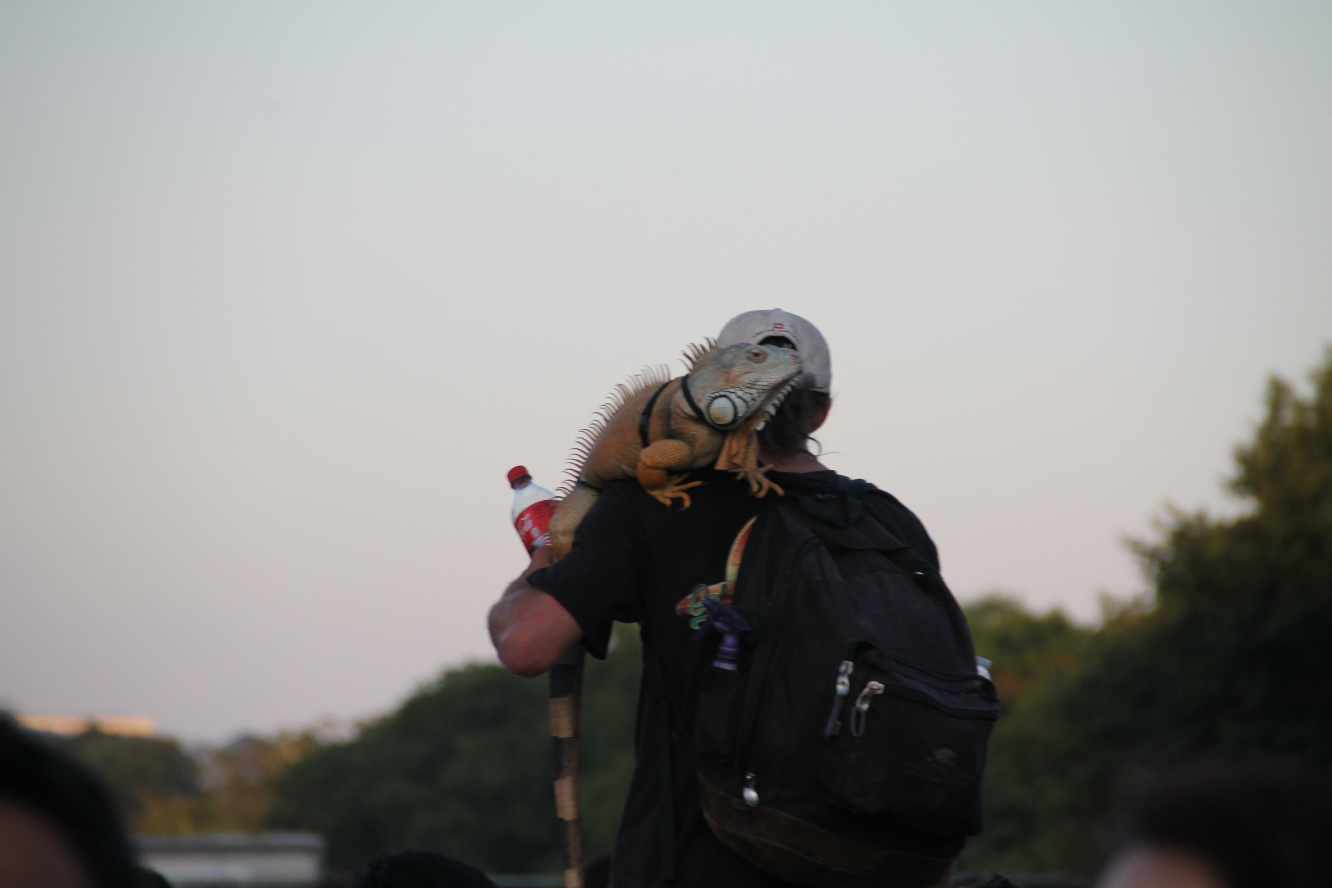<This guy. What can I say about him? He brought his massive iguanato watch the 4th of July fireworks display in the Mall in Washington D.C. I was not the only person to get a photo of these two.