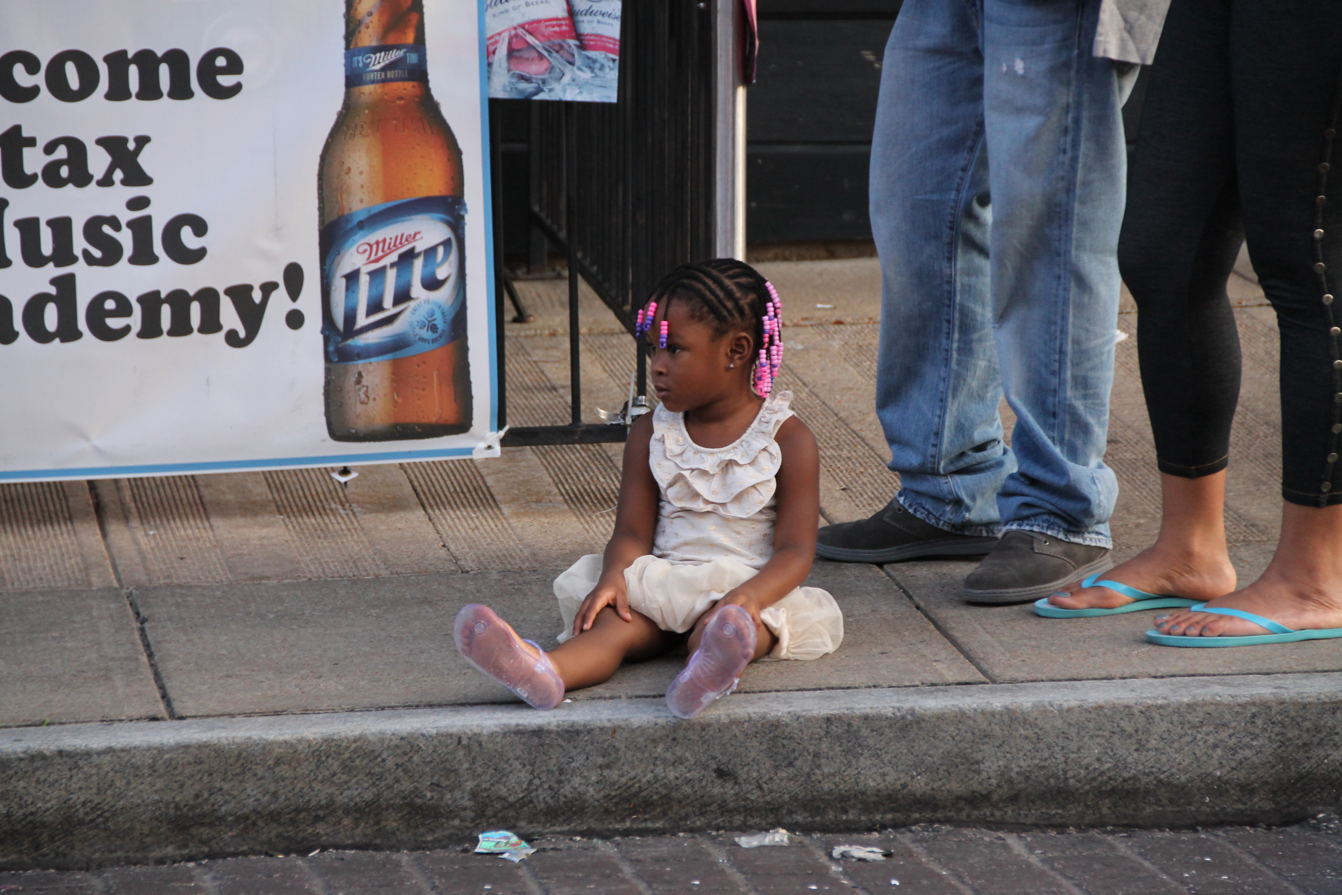 This little girl is gorgeous. She was sitting in Beale St, Memphis, with her family watching some street performers doing an acrobatics display. I suspect some of the boys performing were her brothers or cousins, but she may have just been hanging out.
