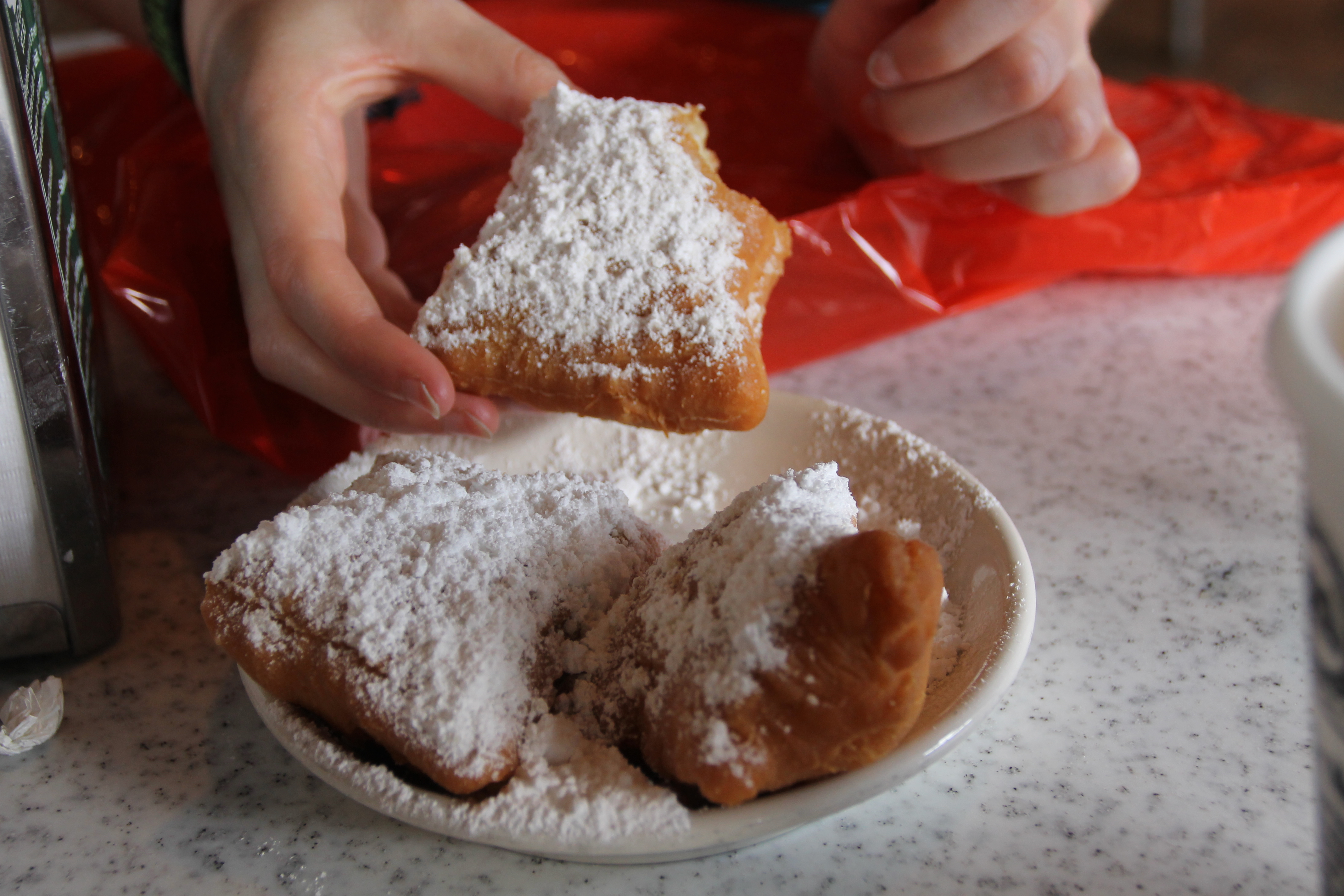 Beignets (French doughnuts) at Cafe du Monde in New Orleans. The were truly excellent, but you had to be very careful not to breathe in or out while taking a bite or the powdered sugar would get you! This place was also open 24 hours a day, everyday. By all accounts it’s a requirement when you’re in New Orleans to go there.