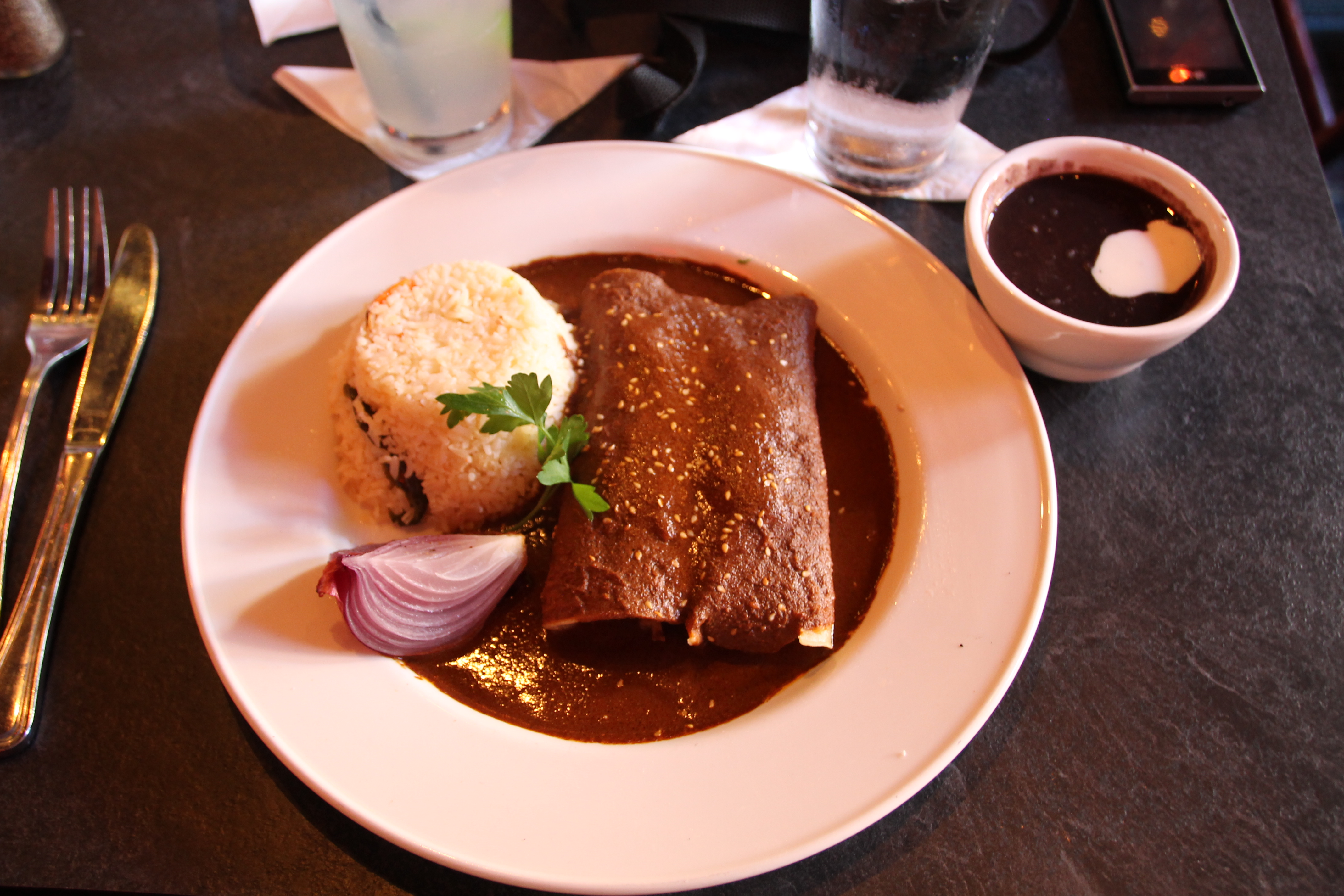 Chocolate mole enchiladas in Austin, Texas. Another fantastic meal! Also the black beans in the top right were amazing.