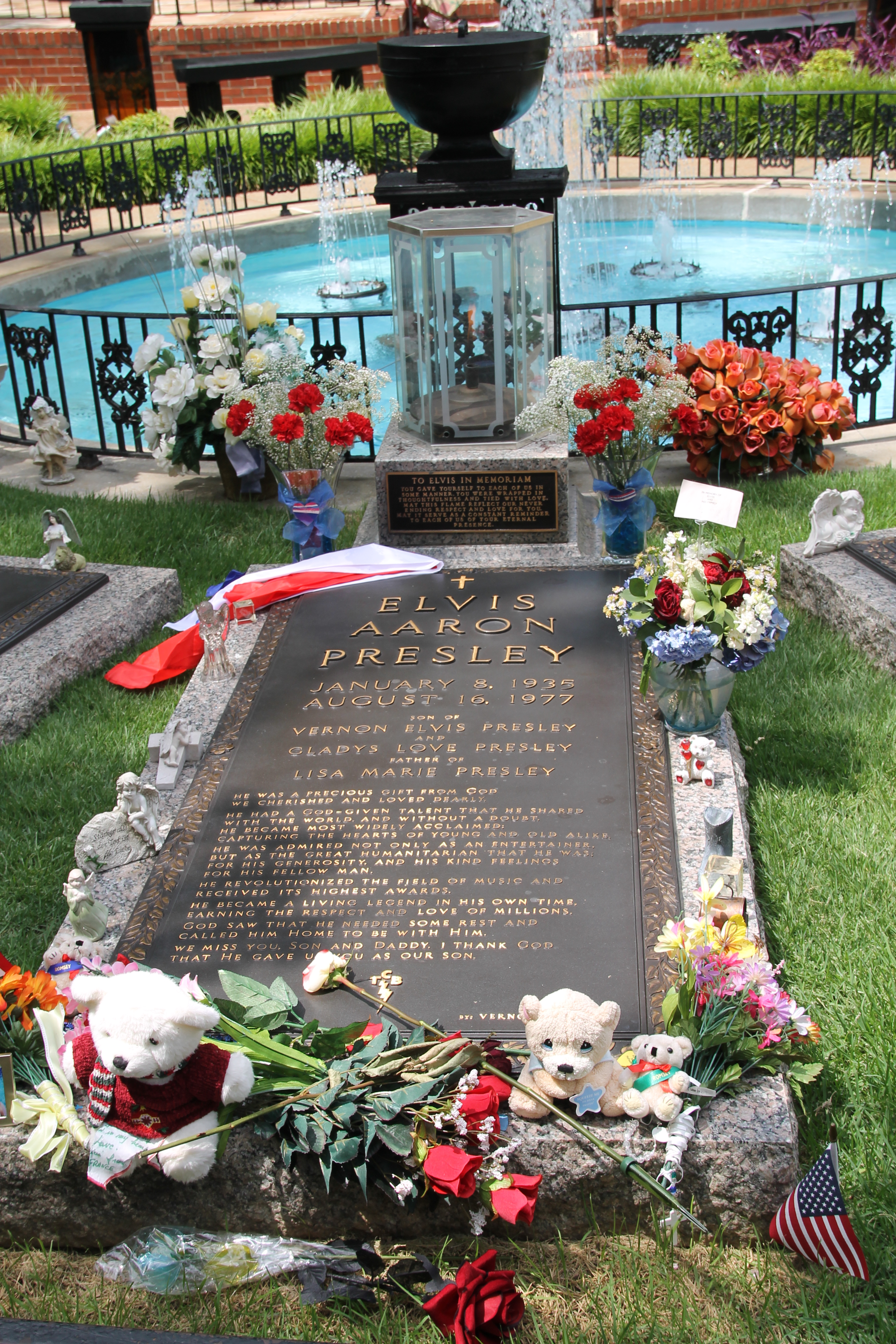 The New York City Public Library. This reminded me really strongly of a scene in the Harry Potter Lego video game, and when I showed a colleague at work they said the State Library in Melbourne was better.Radio City Music Hall. I really liked the art deco stylings and the use of neon lights, it’s very different to a lot of the stuff you get here in Melbourne.The classic night time shot of Times’ Square. I actually didn’t enjoy it that much (the Broadway show I saw excluded, because that was amazing!), it was full of other tourists and street hawkers trying to get money from me, but it was definitely an experience I am glad I had.Manhattan city skyline from the top of the Rockefeller building. The day was weirdly overcast, but still very warm and glarey.Obligatory photo of Lady Liberty. It was the same day as the photo of the skyline but the sun had come out by then. I tried to get a bit arty with the angle, I’m not sure I succeeded.World War II Memorial in Washington D.C. Each of the pillars you can see in the background represents a state and their contribution (and losses).On the fourth of July the Washington Monument was lit up by fireworks as the sun set; it was pretty spectacular. Unfortunately the monument is still covered in scaffolding because it split during an earthquake a couple of years ago.This is Elvis’ grave at Graceland, Memphis. You can see from the contributions left there that people literally worship it. According to the guided narration device, they will display any and all tributes on the grave until such time as the elements degrade them. The graves along side are Elvis’ parents and twin brother who died as an infant. I must say it’s weird visiting graves when the weather is nice, it seems unfitting.To contrast the impressive image of the original Lady Liberty, here is a shot of the replica in Las Vegas. There is something about the city that makes me wary; some seething underbelly of human misery upon which these glittering, gaudy monuments are built.The last photo in this group is of Santa Monica Pier and Venice Beach. The weather here was a bit strange, it was a little bit cold, and the clouds were coming down over the hills behind the ferris wheel. I think it was also a lot less busy because it was not a nice day so I got a different feeling of the area than what’s shown in movies and TV. It’s hard to imagine this as the Baywatch Beach from this photo.
