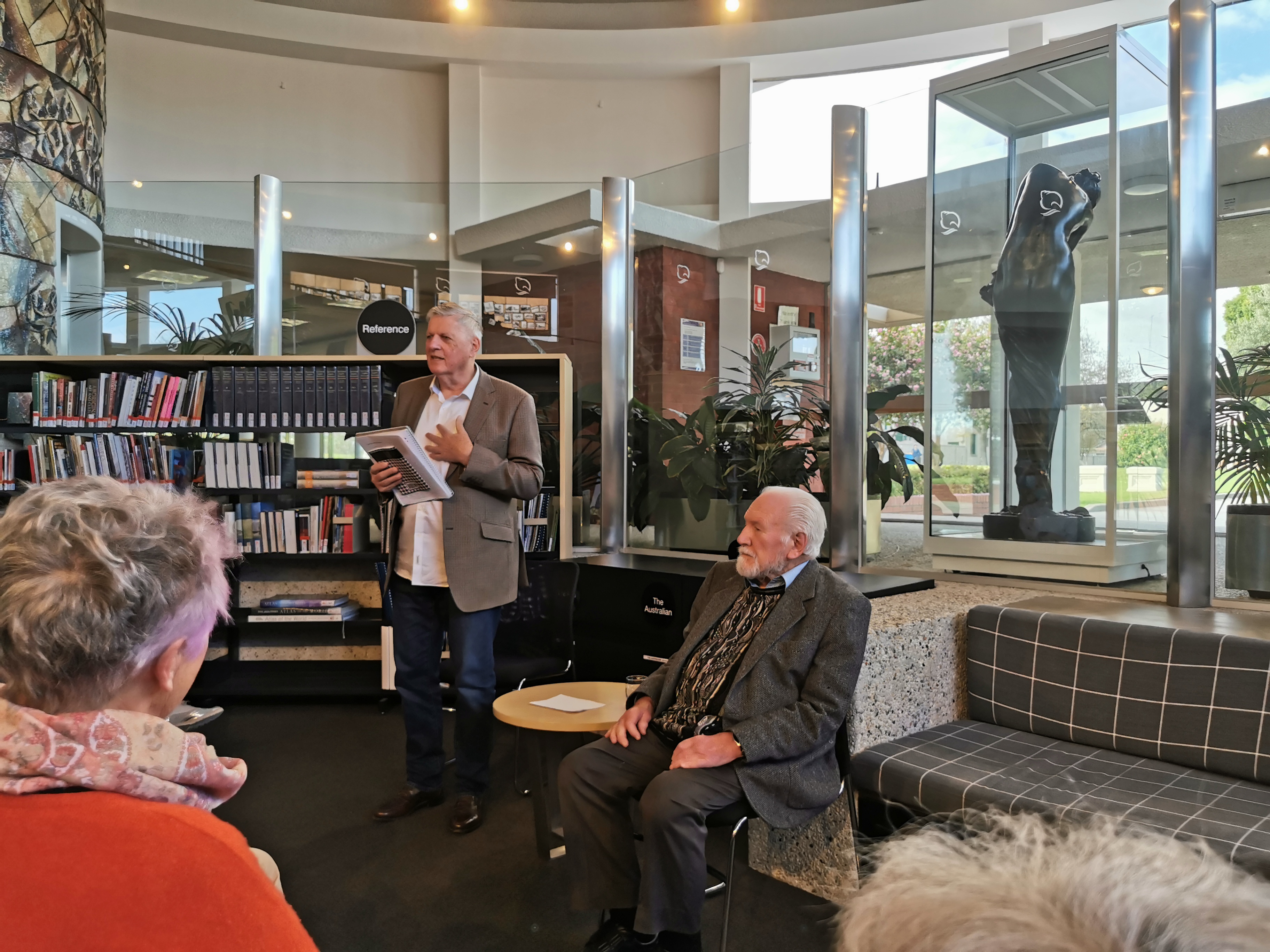 Yesterday I was lucky enough to attend the book launch for my friend and poet, John Lowe’s collection Houndstooth. It was held at Brighton Library, a bit of a trek for me but worth it, and attended by around thirty people, friends, family, fellow writers.