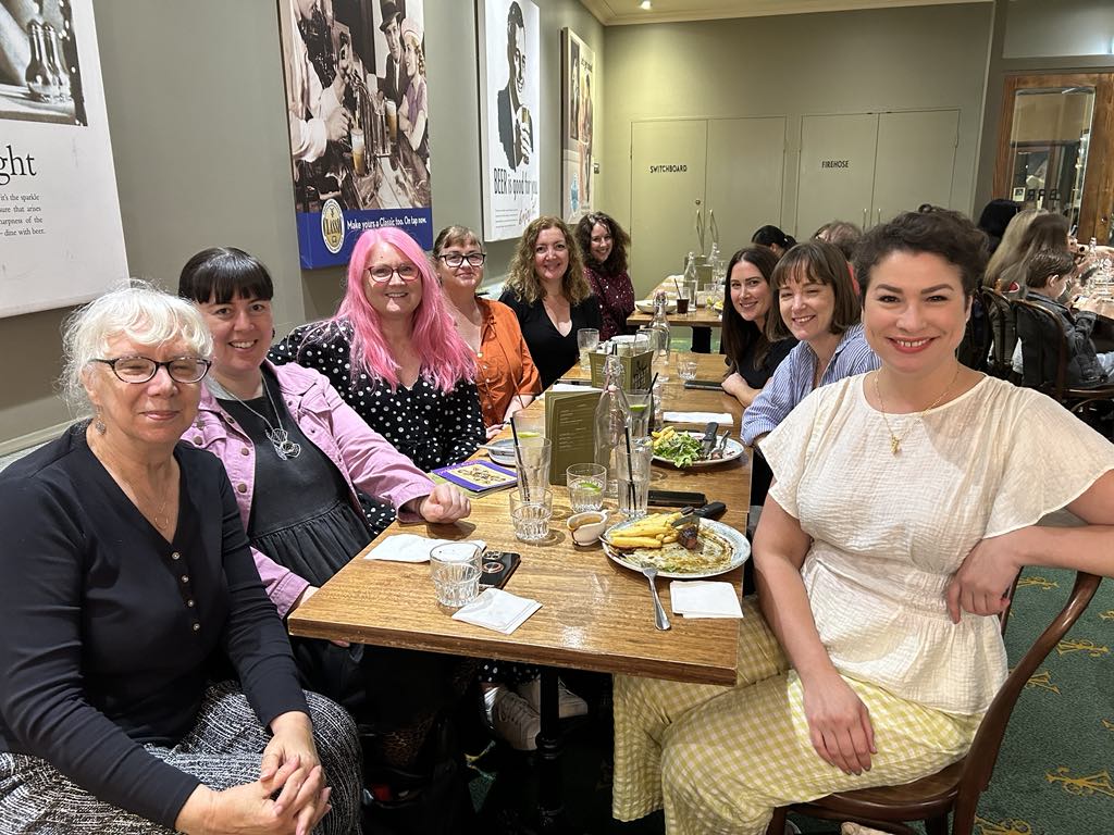 In addition to finishing my first draft, and achieving my monthly writing goal, I went out today for lunch with some of my fellow writers from the Romance Writers of Australia, you can see us all below at Young and Jackson’s in Melbourne: