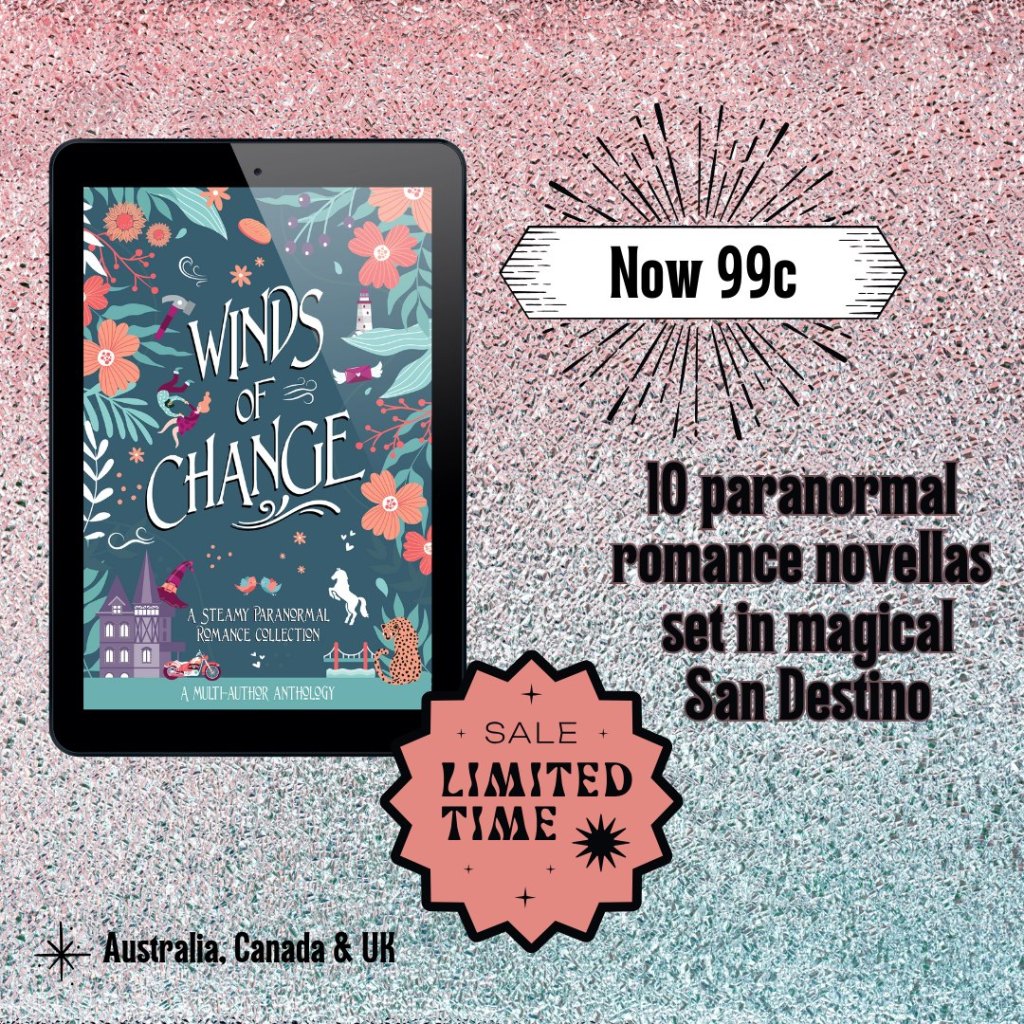 This is a quick post to tell you my anthology collaborators and I are offering a fabulous special on the paranormal romance anthology, Winds of Change: A Steamy Paranormal Romance Collection–we have a BookBub Deal for Australia, Canada and the UK!